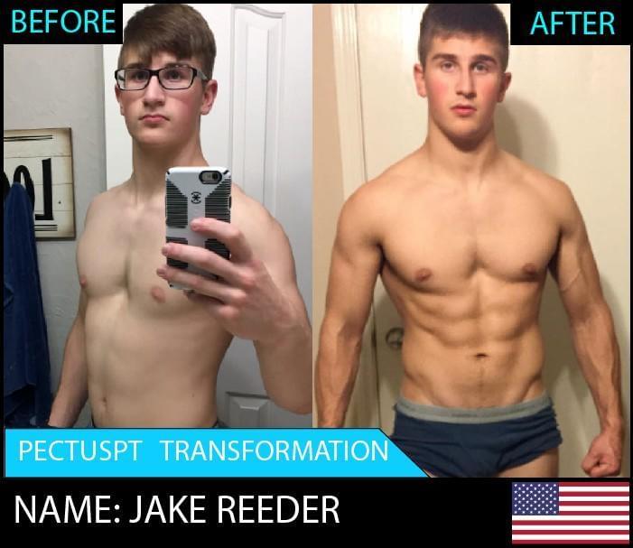 Jake’s transformation speaks for itself. He is JACKED and an inspiration to everyone with pectus. He gained a ridiculous amount of muscle & strength within only 8 weeks. When asked about the program Jake answered "I feel great. I have changed my body so much" and referenced to how much more confident he is now and how his mindset has improved dramatically.